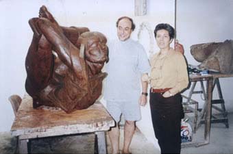 Amadasi em seu atelier com a poeta Dalila Teles Veras, 1999